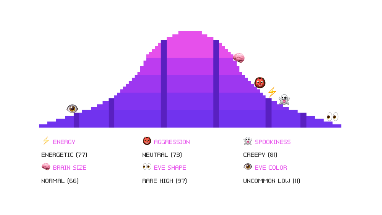 For example, an Aavegotchi with the following traits: Aggression: 90, Energy: 87, Spookiness: 11, and Brain Size: 7 would benefit from Wearables that increase Aggression and Energy, but decrease Spookiness and Brain Size. On the other hand, it would be counter-productive to add Wearables that decrease Aggression and Energy, but increase Spookiness and Brain Size to a Aavegotchi with these trait scores.