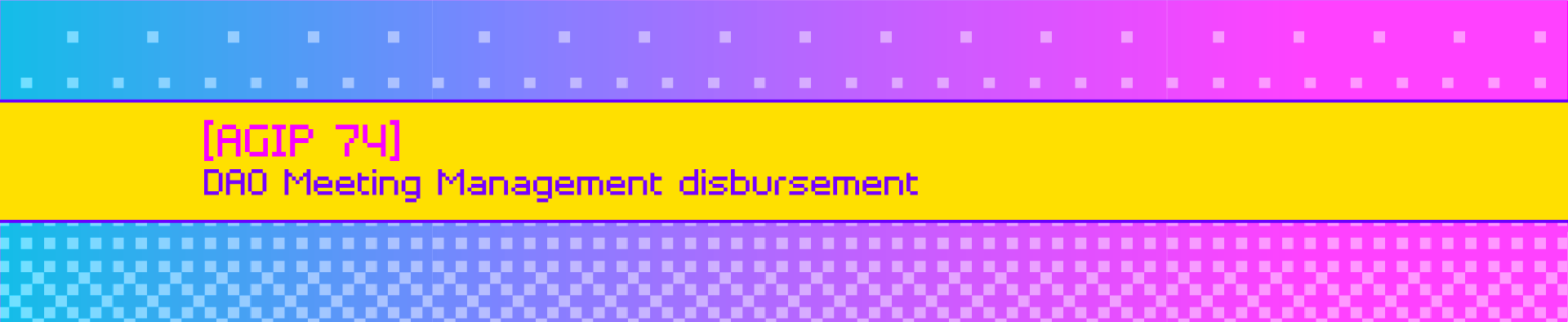 - AGIP 74 Discussion (DAO Meeting Management and Delivery: One-time disbursement for fulfilled deliverables)