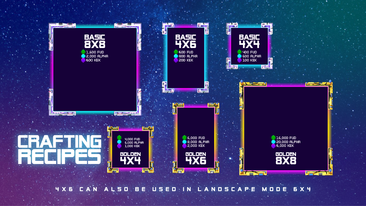 4x6/6x4 LE Golden NFT Display: 6,000 FUD, 8,000 ALPHA, 2,000 KEK