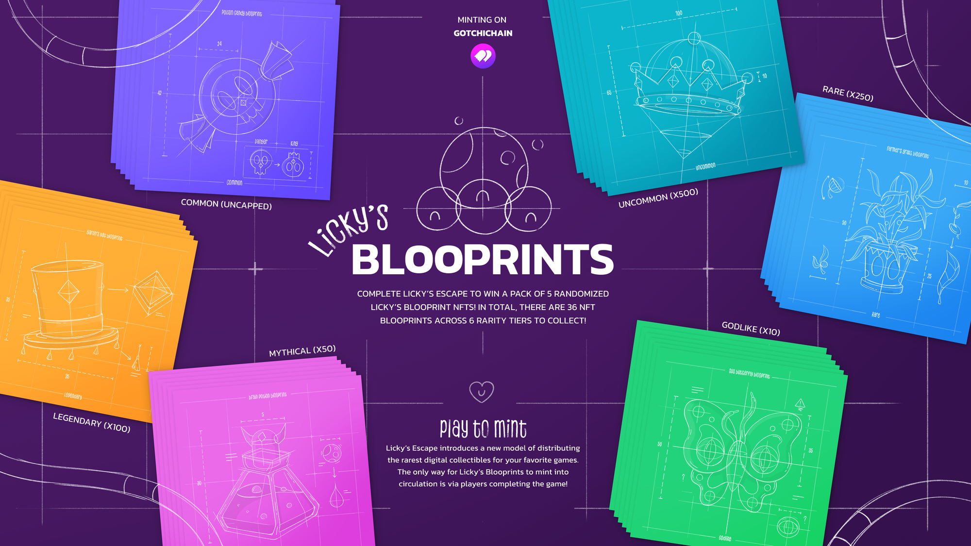 We’re excited to introduce Licky’s BLOOPRINTS - an exclusive digital artwork collection showcasing the making of Licky’s Escape. Any player that perseveres until the end and helps Licky successfully escape within our two-month launch window will receive a Bloopack containing five random BLOOPRINTS.