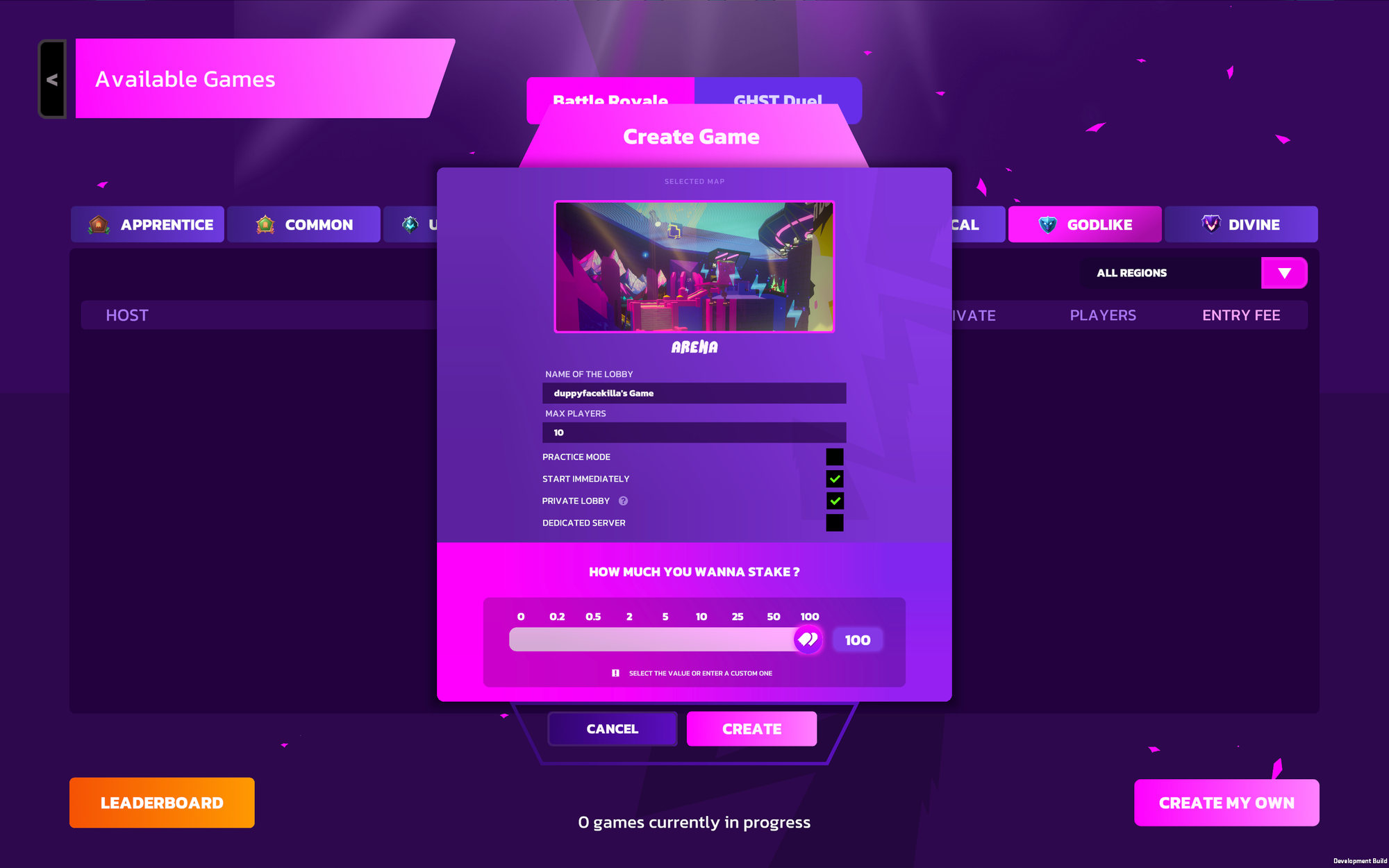 - New Create Game Modal: A new look modal for creating games has been added.