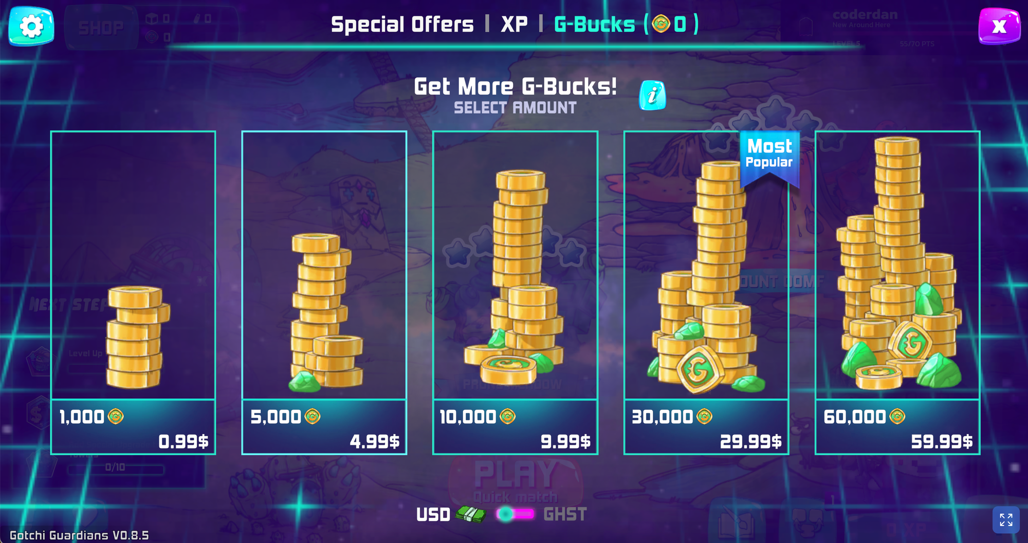 In addition to purchasing with crypto, you can also top up your G-Bucks via credit card purchase using our new partner, Xsolla.