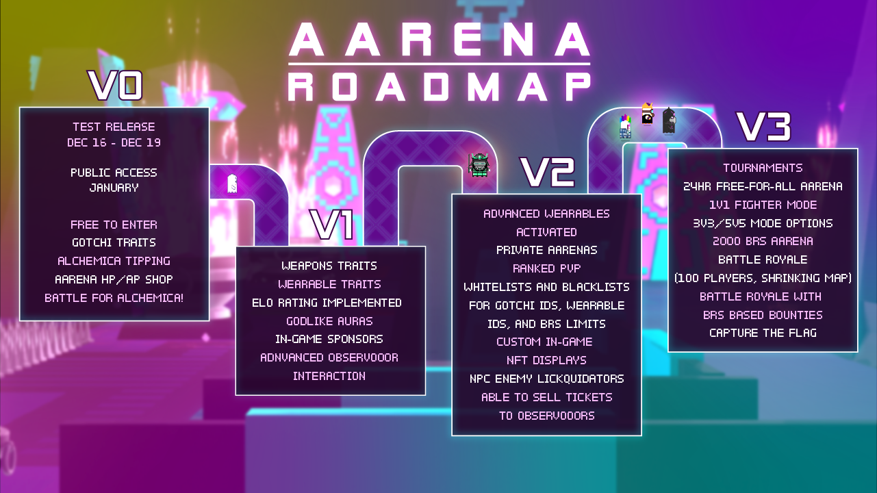 As we develop the Aarena, these features, and moar, will roll out over four releases. Read on for the Aarena Roadmap!