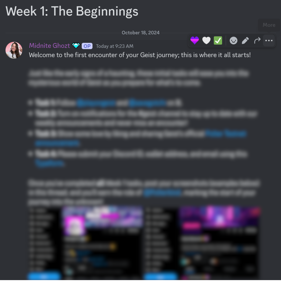 Once you complete all tasks for Week 1, you’ll earn the role Polterkind, marking your first step in the Geist Encounters journey.